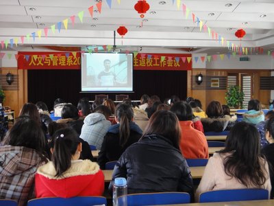 3月7日上午,人文与管理系2007级组织刚刚返校的法学、公管、信管员工,在北校区实验楼七层报告厅观看了安徽省优秀老员工村官事迹专题宣传片《青春在田野里闪光》。