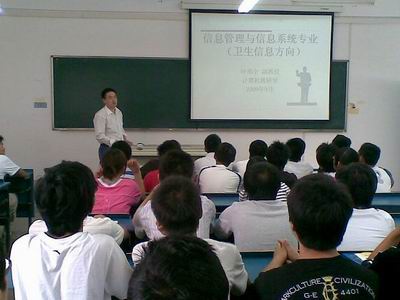 叶明全副教授采用了多媒体教学方式,对医学信息管理专业的相关知识进行了循序渐进的讲解。叶老师从医学信息管理专业的学科特点出发,向同学们详细讲述了医学信息管理专业的培养目标、学习内容、社会人才需求、专业课程设置等内容,使同学们认识到在大力发展卫生信息化的今天,社会对医学信息管理人才的需求十分迫切。
