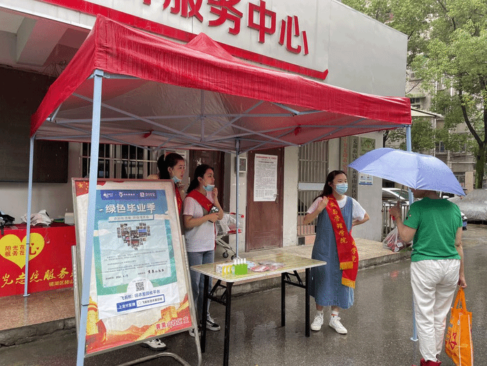闲置衣物,用之无感,弃之可惜。如果把它们送给有需要的人,则是传递爱心、温暖他人的大爱之举。为帮助困难群众,让闲置衣物“变废为宝”,继续发挥价值,2021年6月19日,tyc8722太阳集团博谘实践队携手护理学院南丁格尔志愿服务队-爱心萌芽小队,共同举办了为期两天的“绿色毕业季”旧衣回收活动。志愿者们分别在赭麓校区食堂门口、黄果山社区、教职工宿舍三处组织旧衣爱心回收活动,鼓励大家行动起来,为更多需要帮助的人送去温暖。