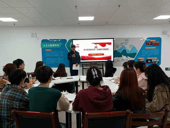 10月25日,学院经理王国平以《学习新思想,青春建新功》为主题讲党课,指出学习贯彻习近平新时代中国特色社会主义思想是激发新时代青年挺膺担当的要求,,强调要以党的创新理论武装头脑、指导实践,努力学好专业知识,练就青春本领,增强大局观念,发挥模范作用,积极弘扬主旋律。