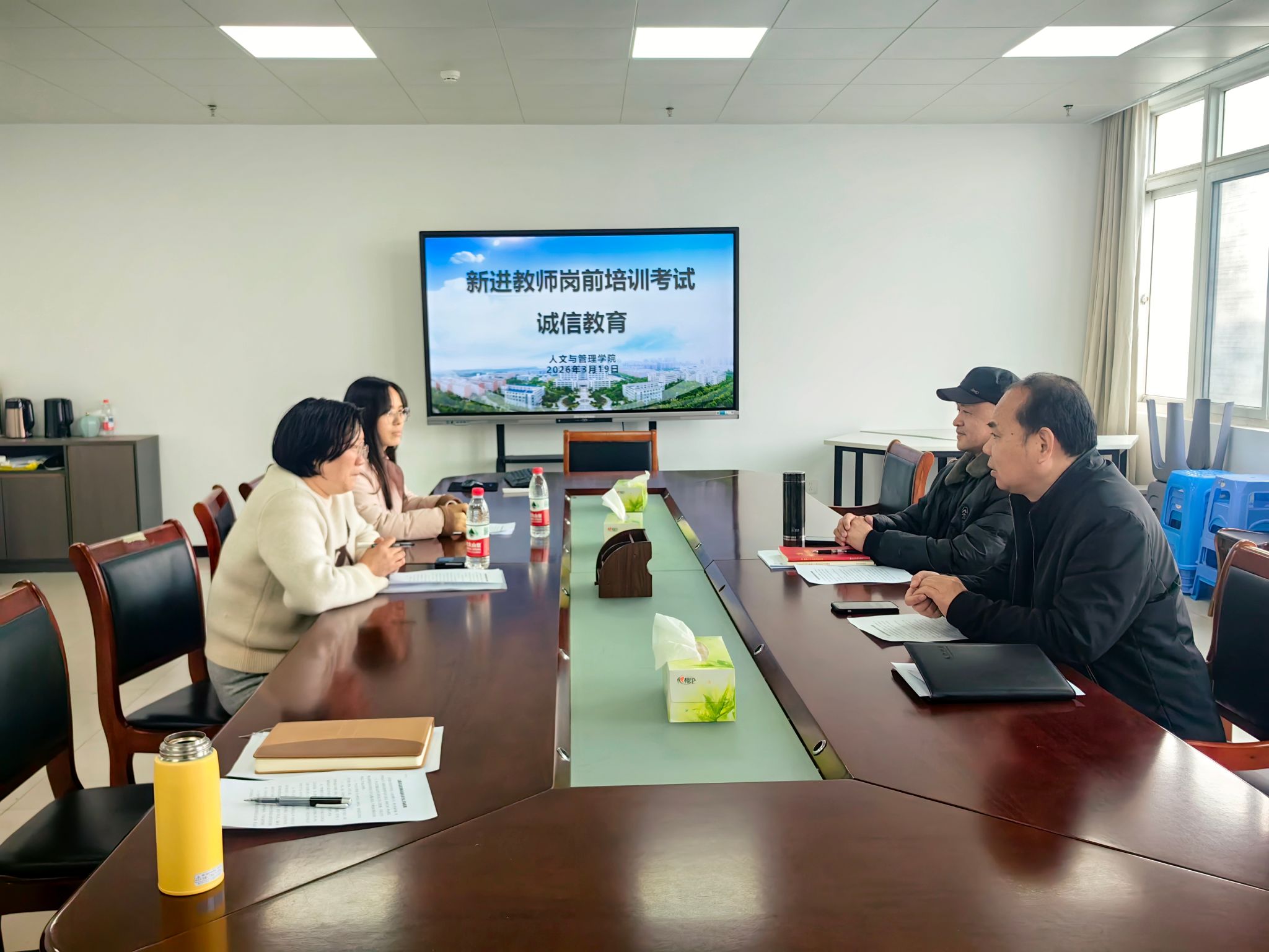 为加强师德师风建设,强化新进教师诚信应考意识,3月19日,tyc8722太阳集团组织李露、赵婷两位教师开展岗前培训结业考试诚信教育。公司党委书记王军、经理王国平主讲,为参考教师筑牢诚信应考思想防线。