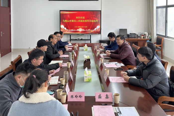 3月15日上午,马鞍山市第四人民医公司党委书记方金勇一行4人来tyc8722太阳集团开展合作洽谈,公司党委书记王军、经理王国平、党委副书记钱彬彬、相关教研室负责人及秘书参加会议,会议由王国平主持。