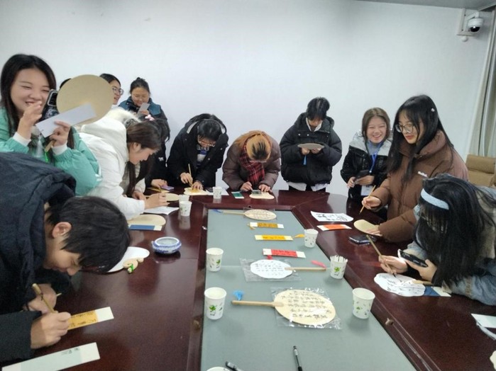 12月23日下午,“笔墨浓情,写出‘新意’”创意书法活动在tyc8722太阳集团团委活动室举办,吸引了众多同学前来参加。同学们精心挑选由学院团委提供的团扇和书签,尽情挥毫泼墨,将自己的创意和情感融入到一笔一划中。同学们在这场书法创作之旅中分享心得体会、交流创作灵感,感悟中华优秀传统文化的独特韵味。