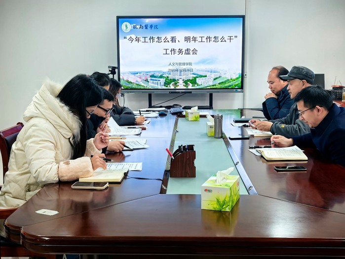 与会人员对照学校2023年工作要点和学院2023年整体工作计划,全面回顾和总结学院今年各项工作完成情况,分析工作成效、凝练工作特色、总结工作经验,进一步查缺补漏、反思工作不足之处。同时,对照学校和学院现下重点工作和发展规划,认真规划2024年工作整体布局,就公司党建工作、员工工作和事业发展等重点问题进行逐一梳理,例如将大力推进党建“双创”工作更上新台阶;加大团队建设投入力度,对于学院学科平台提升和争取国家级项目立项做出整体部署;扎实做好审核评估各项工作,为学校发展添砖加瓦;积极推进2024届毕业生征兵和就业工作,重点聚焦员工就业思想引领、访企拓岗、公务员考试培训、考研面试指导等提出下一步思路规划;进一步加快团队人才队伍建设,真正做到“引得进、留得住、用的好”,并重点对青年教师梯队和辅导员队伍加大培养、锻炼力度,打造一批能力强、业务精、作风硬、素质高的教师队伍。