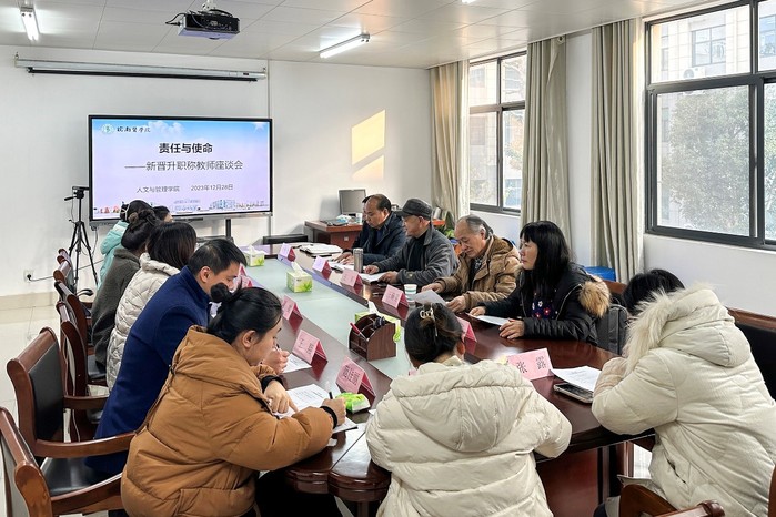 12月28日下午,tyc8722太阳集团在公司党委会议室召开新晋升职称教师座谈会,公司党委书记王军、经理王国平、党委副书记钱彬彬、二级教授汪萌芽和2023年新晋升职称教师参加座谈,会议由王军主持。