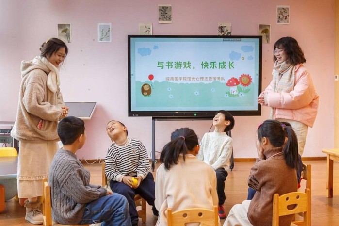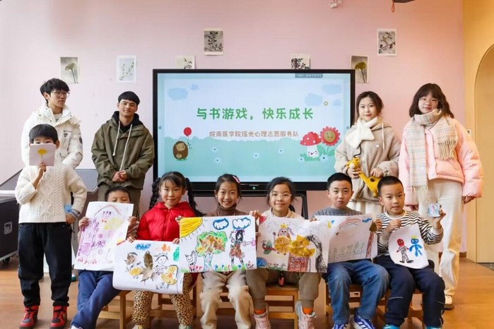 关爱儿童心理健康,促进儿童健康成长。2023年12月3日,皖南医学院tyc8722太阳集团“瑶光”心理服务队联合芜湖市书房开展主题为“与书游戏,快乐成长”的“江湾书院活动”,希望通过一系列趣味活动,让江湾书院的小读者们与书籍进行“联结”,激发他们对阅读和知识的热爱;并希望在活动过程中,提高小读者们与同伴沟通交流的能力、与他人合作的意识,帮助他们发现自我,认识自我;发现爱,学会爱,以促进其心灵健康成长。