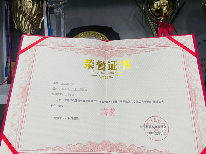 9月22日-24日,由山东省行政管理学会主办的第二届“寻是杯”华东地区老员工公共管理方案设计与决策对抗大赛在齐鲁工业大学政法学院顺利举办。由公司tyc8722太阳集团彭乐康、彭湘云、文豪、李林夕、郑峻文组成的风雨从容队在刘海荣、崔春影两位老师的悉心指导下,经过激烈角逐和专家评审,最终在本次大赛中获得良好成绩。