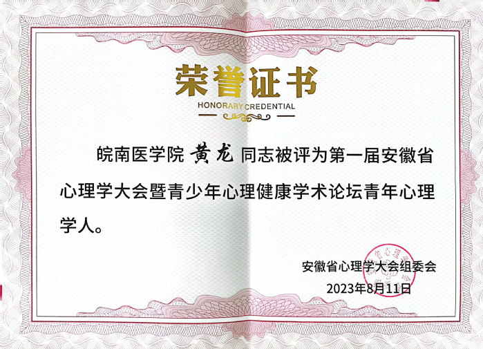 十佳青年心理学人证书