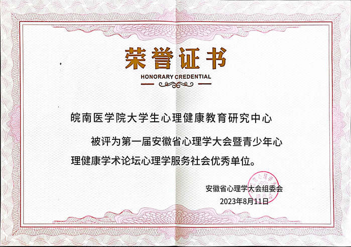 心理学服务社会优秀单位证书