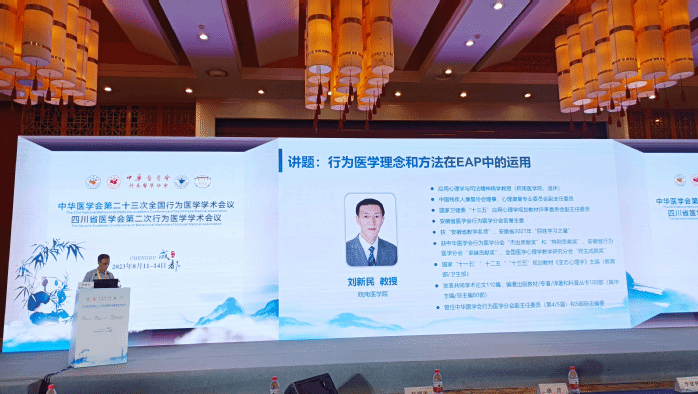 8月11-14日,由中华医学会、中华医学会行为医学分会主办,四川省医学会、四川省医学会行为医学专业委员会、四川大学华西医院承办的中华医学会第二十三次全国行为医学学术会议在成都市召开。来自国内外各高校、医疗机构、科研院所的相关领域专家共600余人参会,公司心理学团队应邀参会。本次大会紧密围绕“行为决定健康,良好生活方式”主题,设立了主题报告和行为决定健康等8个分论坛,系统介绍了国内外行为医学的新进展、新成果,共同讨论了我国行为医学的发展前景。公司刘新民教授应邀作《行为医学理念和方法在EAP中的运用》学术报告,详细介绍了EAP项目的设计、内容和实施情况等,受到与会专家们的广泛好评,他们在会下与刘新民进行了热烈研讨,并积极索要基于EAP项目实施的研究成果《心理健康释疑解惑300问》 (该书入选国家新闻出版署“2023年农家书屋重点推荐出版物”目录)。中华医学会行为医学分会对刘新民在行为医学领域多年来的临床实践成果予以高度评价,表示将根据EAP项目需要积极支持后续服务和建设。