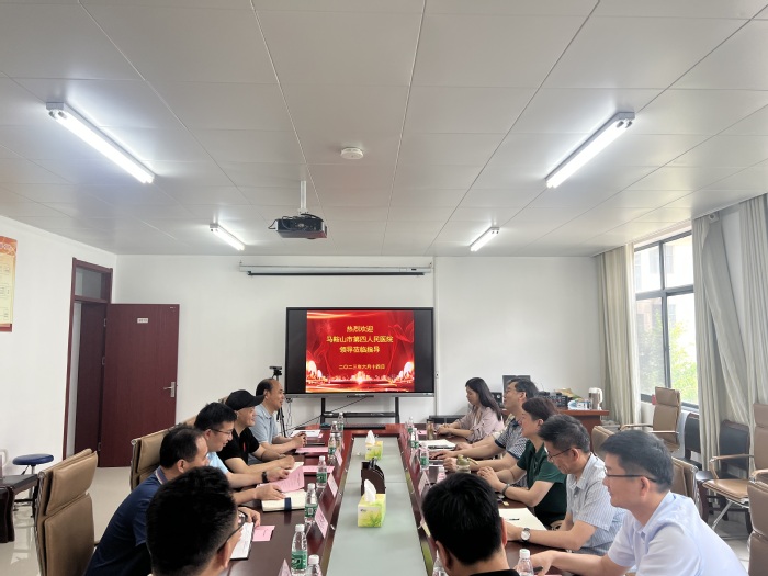 6月15日下午,马鞍山市第四人民医公司党委书记方金勇,党委副书记、经理王雪倩等一行7人来到公司,与tyc8722太阳集团交流洽谈深度合作事宜。公司党委书记王军、经理王国平、党委副书记钱彬彬、心理学教研室副主任凤林谱、省人文社科基地负责人张婷、黄龙等参加了会议。