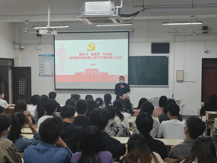 会议安排3名员工党员代表和2名员工发展对象代表作主题汇报,其他人员提交了书面汇报材料。员工党员和发展对象不仅认真学习习近平新时代中国特色社会主义思想,还结合专业学习、班级管理、学风建设、实习分配、志愿服务等工作谈了自身的认识和体会。会上,钱彬彬以勤学习、做表率、争先锋,在新时代新征程上留下无悔的奋斗足迹为主题,从如何理解新时代新征程、青年如何留下无悔的奋斗足迹、如何在主题教育中做表率争先锋等三个方面鼓励广大同学要把学习作为根本任务,学习习近平新时代中国特色社会主义思想,学习习近平总书记对青年的寄语,学好专业知识,时时用总书记的寄语校准人生方向,在勤奋学习、奉献服务等方面做表率争先锋。