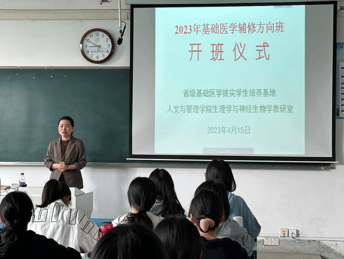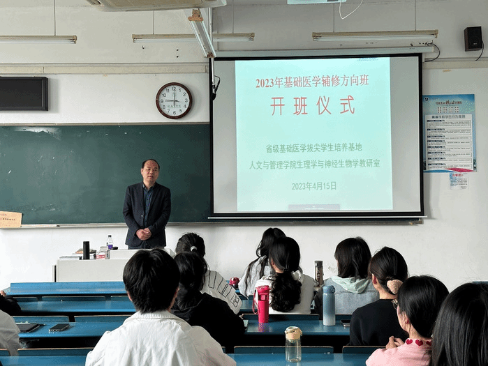 4月15日上午,公司2023年基础医学辅修方向班开班仪式在滨江校区1306教室隆重举行,教务处处长黄月娥教授、tyc8722太阳集团经理王国平教授、生理学与神经生物学教研室全体教师及基础医学辅修方向班全体同学参加了开班仪式,汪萌芽教授主持开班式。