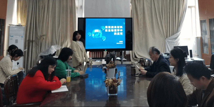 査盈盈副教授以“浅谈纳米材料在生物医学中的应用”为标题,先从“纳米材料的概念和应用前景”开题,再具体到“纳米材料在生物医学领域的应用”,并通过课题设计路径以文章“Long-term maintenance of synaptic plasticity by fullerenol ameliorates lead-induced-impaired learning and memory in vivo”为主线,详细介绍近期研究成果,其既富有创新性又有明显实用价值的研究成果,引起参会师生的热烈讨论。尤其是清晰的课题设计思路,给在场的“启明星”小组成员和研究生的科研创新以新的启发与感触。
