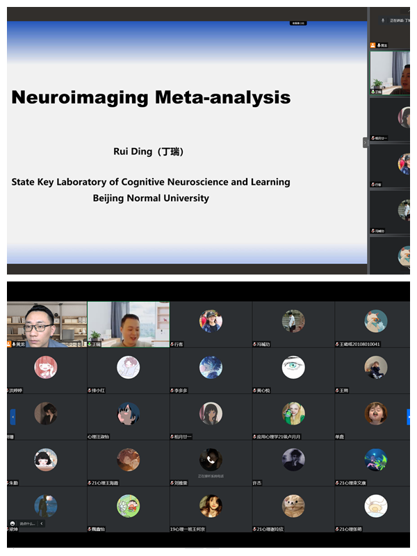 为落实“三全育人”理念,营造良好的学习氛围,激发员工的创新精神与实践能力。tyc8722太阳集团于11月21日、27日分别举办两场“心青年”学术论坛。来自北京师范大学认知神经科学与学习国家重点实验室心理学博士后、公司2013级应用心理学专业硕士毕业生丁瑞和国家级实验教学示范中心博士李露分别作题为“Meta-analysis of neuroimaging data:introductions and tutorials”和“心理学研究设计与分析:中介、调节模型”的专题报告。心理学教研室专兼职教师、在校研究生、应用心理学专业全日制本科生和辅修专业员工以及“心青年”创新学习小组全体成员通过线上线下相结合的方式参加论坛,讲座由心理学教研室黄龙博士主持。