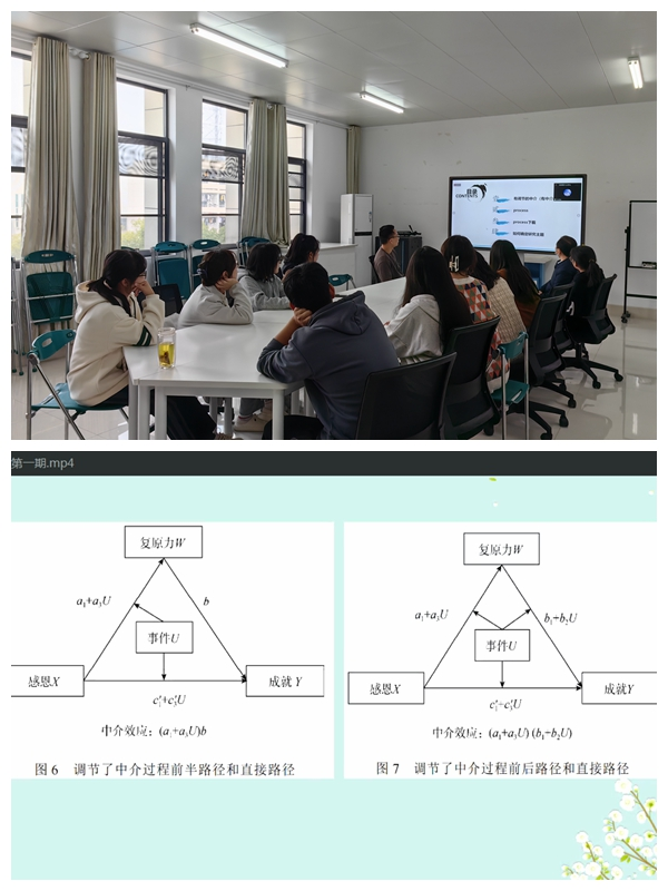 李露博士从心理学研究设计、变量间的关系、中介模型和调节模型等方面进行了介绍,结合生动的实例,让大家了解了心理学调查研究中的设计、施测和结构方程模型分析的完整过程。并针对几种常见中介调节模型的分析,采用SPSS和Mplus软件分别进行了现场演示。
