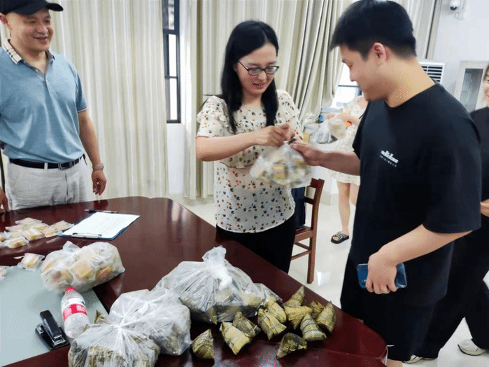 温暖不断线,关心不断档。6月2日,公司团委采购、分发粽子和绿豆糕,向每一位在校生送上诚挚节日祝福。悠悠粽叶香,软糯甜咸粽,传递着浓浓端午情和师生情;细腻甘甜的绿豆糕,为学子解暑降火、清凉夏日。同学们纷纷点赞这一味蕾赠礼、佳节祝福。