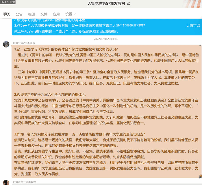 为进一步加强对入党积极分子和发展对象的教育培养,经公司党委研究决定,于2022 年 4月 24日开始举办中共皖南医学院委员会党校第五十七期培训班通过线上开班。本次党课由培训采取专题讲座、观看视频、个人自学、在线研讨、学唱《国际歌》等形式,tyc8722太阳集团共47名入党积极分子和19名发展对象参加培训,由班主任王燕威带班培训。