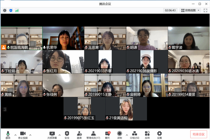2022年5月15日晚,皖南医学院抗疫心理援助热线团队通过腾讯会议召开了心理援助热线工作总结会。会议由中国心理学会注册系统注册督导师、皖南医学院应用心理硕士点负责人杭荣华教授主持,全校抗疫心理援助的心理专业指导教师和14名研究生志愿者参加了会议。