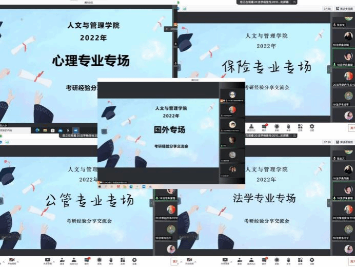 此次考研经验分享交流会共设5场,由应用心理学专场、保险学专场、公共事业管理专场以及法学专场4场专业经验分享交流会和1场国外考研经验分享交流会组成,共计300余名员工参加。
