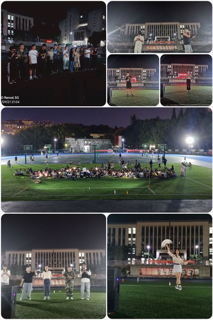 9月21日晚上,在赭麓校区操场开展了“情满中秋夜,青春献祖国”文艺活动。今年正值建党一百周年,李瀚琪同学以“青春中国”的演讲进行开场,带领大家一起回顾了党的光辉岁月,铿锵有力的声音,富有感情的朗诵引起了全场同学的热烈回应,让同学们深刻体会到党的一百年的艰苦奋斗和无限辉煌。圆月初升,同学们围坐在操场观看表演,用欢快的歌声,灵动的舞蹈,将青年的活力展现的淋漓尽致,尽显青春活力。闪光灯照亮了黑夜,一时间,歌声舞声欢笑声和热烈的掌声不断的萦绕在操场,久久不能散去,让大家淡淡的思乡之愁在皎洁的月光里逐渐消散。活动的最后全场同学齐唱《我和我的祖国》,歌声响彻校园,告白敬爱的祖国,表达了浓浓的爱国情怀。