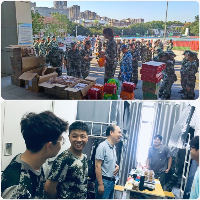 9月21日下午,学院在赭麓校区四合院门口为全体新生和教官发放了月饼和饮料,让同学们感受到了学院大家庭的温暖和关爱之情,窦弘在现场祝福全体教官和新生中秋快乐,鼓励新生继续以高昂的斗志和饱满的热情完成军训任务。随后王国平深入宿舍了解员工在军训、学习和生活的困难和诉求,并进行一一解答,同时嘱托和勉励新生要把握青春时光,学好知识和技能,锻炼好身体,做一个朝气蓬勃,对社会有贡献的时代青年。