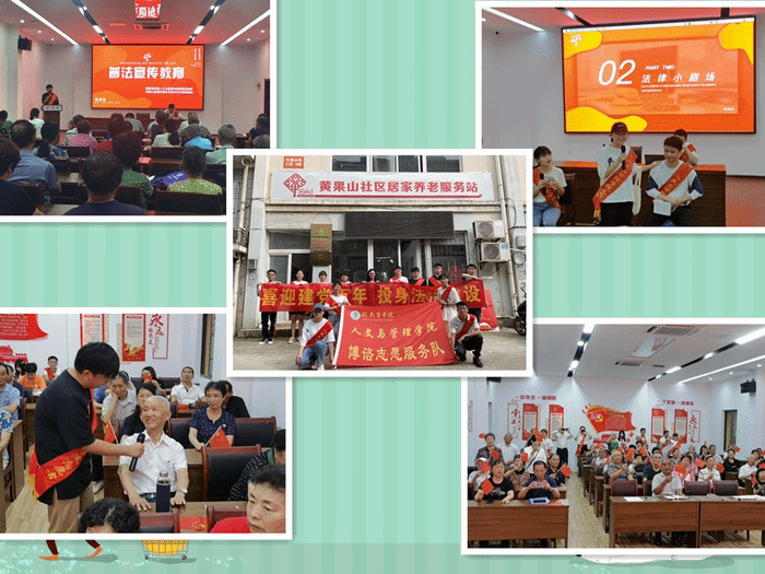 深化志愿服务,积极为广大干部群众办实事、解难题、做好事,不仅能弘扬“奉献、友爱、互助、进步”的志愿者精神,还能在全社会营造互帮互助、忘我奉献、和谐共建的文明风尚。2021年7月4日下午16时与7月6日下午15时人文与管理公司党员代表与法学专业员工分别走进四湾社区与黄果山社区开展“喜迎建党百年,投身法治建设”社区普法宣讲活动,通过宣讲老年人赡养方面的法律知识、演绎反传销普法专题情景剧、用实际行动践行“我为群众办实事”,让群众感受到党就在身边。在四湾社区老党员访谈环节,一位“光荣在党50年”的老党员王家齐说道:“当代社会法治建设取得了巨大的成就,这些成就都是中国共产党一点一点干出来的,正确的方针、政策和路线给我们的生活带来了满满的幸福感。”身为一名老党员,王家齐处处发挥党员先锋模范作用,无私奉献,乐于服务。为了丰富辖区老年人的生活,2011年四湾社区成立了老年人互助会,而79岁的王家齐就是社区老年人互助会创始者。他常开展一些有利于老同志身心健康、团结友爱的活动,丰富老年人的晚年生活,互助会的成员们亲切地称呼他是“老年人的守护者”。“老骥伏枥,壮心不已”,王家齐即将度过人生的80个春秋,但他却认为只要想帮助别人,年龄不是障碍。“百年恰是风华正茂,青年正当奋进”,他指出当代青年应当牢记习近平总书记“未来属于青年,希望寄予青年”的谆谆教诲,肩负起新时代的接力棒,时刻准备着为党和人民贡献自己的青春力量!