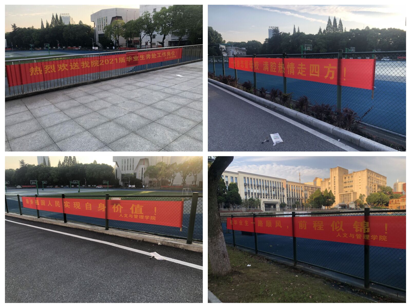 通过年级QQ群向全体毕业生发出了文明离校相关注意事项,饱含深情的向即将离别的学子们道一声珍重;学院通过悬挂条幅、毕业生座谈等形式营造文明离校氛围;号召全体毕业生以健康文明的方式告别母校,感谢师恩,情系母校。