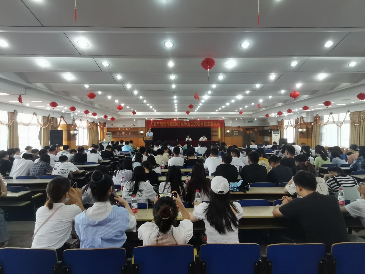 tyc8722太阳集团在赭麓校区4教7楼报告厅召开2021届毕业生文明离校主题班会,年级辅导员向大家通报了文明离校的时间节点安排、各项离校办理事项,在毕业聚餐时要有节有制,要理性表达情感,爱护公物,不违反纪律等。经理胡鸿在文明离校会议上发表了热情洋溢的临别赠言,真诚祝愿同学们一路保重,前程似锦!