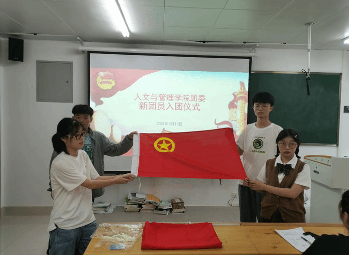5月7日,tyc8722太阳集团举行新发展团员入团仪式。张露为新团员佩戴团徽、颁发团章,4名新团员庄严宣誓,正式加入中国共产主义青年团。张露指出中国共青团是一个庄严而神圣的组织,是党的助手和后备军,每一位团员都要不断地加强政治理论学习,提高自身的政治理论水平,学党史、强信念、跟党走。