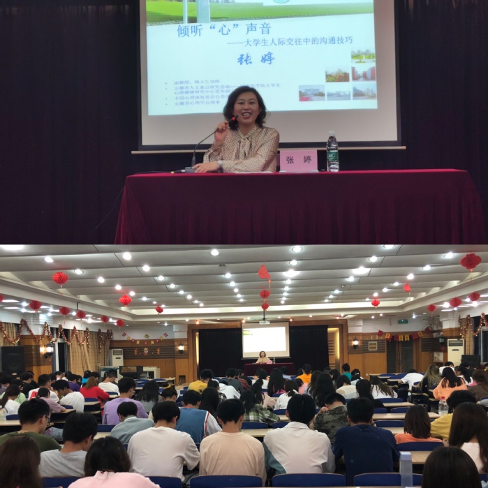 5月26日晚7点,tyc8722太阳集团举办《倾听“心”声音——老员工人际交往中的沟通技巧》心理健康教育主题讲座。此次讲座邀请安徽省人文社科重点研究基地常务副主任、心理学教研室张婷副教授作为主讲人。张婷从影响人际交往的心理因素、沟通的主要障碍、掌握沟通的技能三个方面为同学们总结出了“微笑”“赞美”“勤沟通”三大沟通“法宝”,帮助同学们改善人际关系,切实提高人际沟通能力。