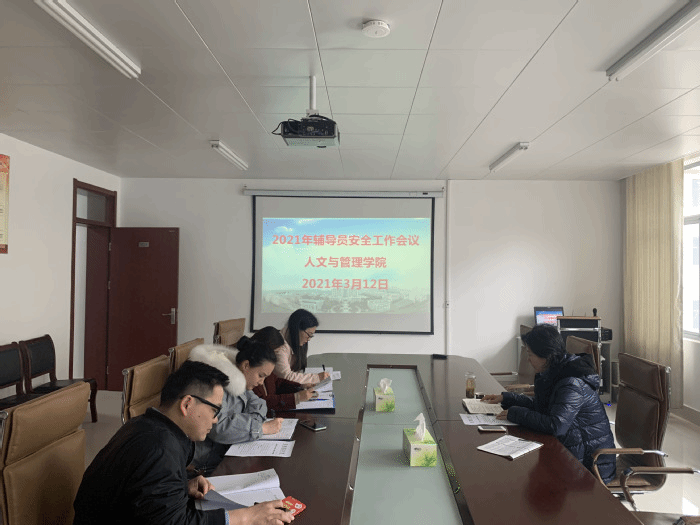 3月12日,人文与管理公司党委书记窦弘主持召开了2021年辅导员安全工作会议,2020级辅导员张露、2019级辅导员成铭、2018级辅导员訾梦婷和2017级辅导员徐德磊参加了此次会议。