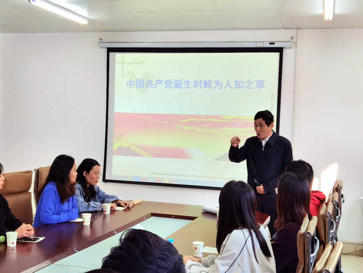 11月4日下午,tyc8722太阳集团特邀党建组织员、校关工委常务副主任、五老报告团成员周强老师给员工第一党支部的党员和发展对象开展了讲座——《中国共产党诞生时鲜为人知之事》。公司党委书记窦弘、员工第一党支部书记成铭参与学习。