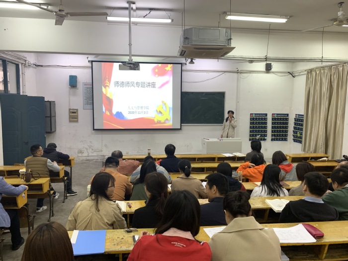 为进一步加强师德师风建设,全面落实立德树人根本任务,11月3日中午,tyc8722太阳集团邀请黄宏平教授在赭麓校区4101教室作了题为“加强师德师风建设 争做新时代‘四有’好老师”的专题讲座,学院全体教职工参加。