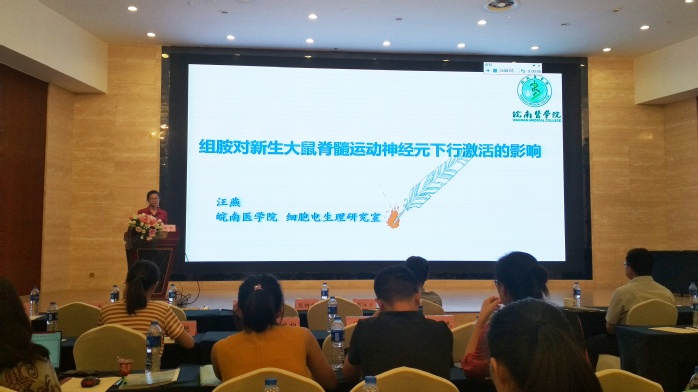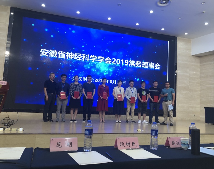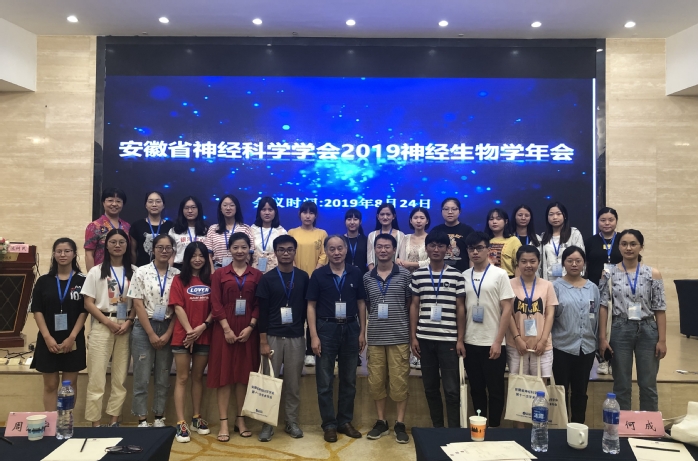 8月24-25日,公司神经科学团队师生一行27人在学科带头人郑超、安徽省神经科学学会副理事长汪萌芽的带领下,参加了在蚌埠市召开的安徽省神经科学学会第十一次学术年会。参会代表有tyc8722太阳集团生理学和神经生物学教研室教师3人、研究生5人、“启明星”小组成员19人。其中“启明星”小组成员包括应用心理学、公管、法学、保险学、康复治疗学、临床医学、麻醉学、口腔医学等专业员工。