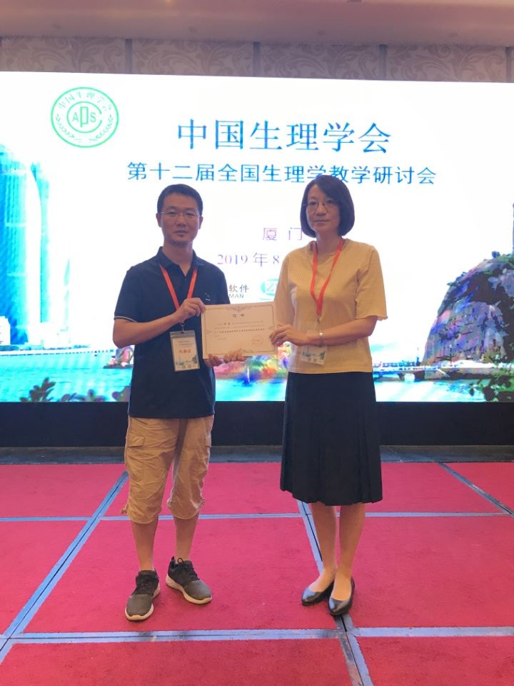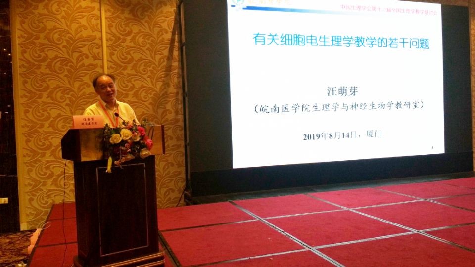 会上,公司生理学教学团队共提交会议论文摘要4篇,其中郑超老师的“创新理念始终贯穿生理学教学的实践与思考”被遴选为大会报告,报告指出在开展生理学特色教学、培养创新复合型人才中,我们积极响应国家号召、高度符合社会需要,引起与会者的广泛共鸣。汪萌芽老师的“以创新型人才培养为导向的实验室开放设计与实践”、张环环老师的“以生物-心理-社会医学模式为导向的《生物医学概论》课程建设初探”、徐爱萍老师的“面向普通医学院校医学影像学专业的生理学双语教学探索与实践”进行书面交流。同时,汪萌芽教授作为中国生理学会常务理事、人民卫生出版社《生理学》第9版教材的作者,应邀作了题为“有关细胞电生理学教学的若干问题”的大会报告。他紧密结合生理学教学难点,以及解决实际教学问题的解惑之道,进行了详细阐述。汪教授还作为特邀嘉宾在“生理学教学的今天和明天”的主题讨论中,提出了“不忘初心”——加强创新能力训练、“面向生命”——重视心理生理学培养以适应“生物-心理-社会医学”模式的创新型人才等观点,给在座的全国生理学教育工作者们以新的启迪。会议期间,汪萌芽还作为继任委员出席了新一届中国生理学会教育工作委员会会议、作为颁奖嘉宾为微课比赛获奖者颁奖。此外,公司生理学教学团队在暑期期间还应邀参加不同类型的教学交流活动。8月6日,汪萌芽教授应邀为“中国生理学会生理和行为学实验培训班”作了题为“脊髓运动神经元的细胞电生理技术与突触传递研究”的特邀专题报告,得到与会者的一致好评。