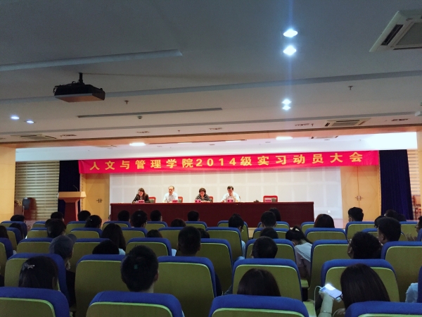 为促进毕业实习顺利开展,提高实习质量,2017年6月7日上午,tyc8722太阳集团在图书信息大楼三楼学术报告厅召开2014级法学、信息管理与信息系统、公共事业管理、应用心理学、保险学专业毕业实习动员大会。学院领导胡鸿、窦弘、王国平,秘书吴映辉、教学代理秘书叶莎莎,各专业辅导员以及2014级全体员工参加了会议。会议由吴映辉主持。