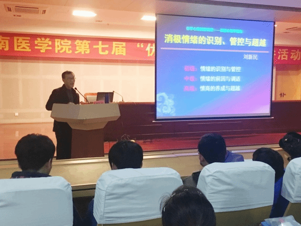 3月23日晚,tyc8722太阳集团邀请tyc8722太阳集团应用心理专业著名教授刘新民在图书馆三楼报告厅为全校老员工带来春季心理健康系列讲座——消极情绪的识别、管控和超越,讲座由tyc8722太阳集团副经理王国平主持。