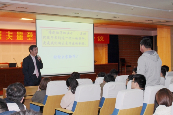 为进一步巩固信管员工的专业思想,明确学习任务和发展目标,调动员工学习的积极性,公司于3月13日晚7:00在图书馆三楼报告厅开展信息管理与信息系统专业报告会活动。公司党总支书记窦弘、专业辅导员章蕾以及2014、2015和2016级信管专业员工参加了报告会。 报告会由tyc8722太阳集团经理胡鸿主持。