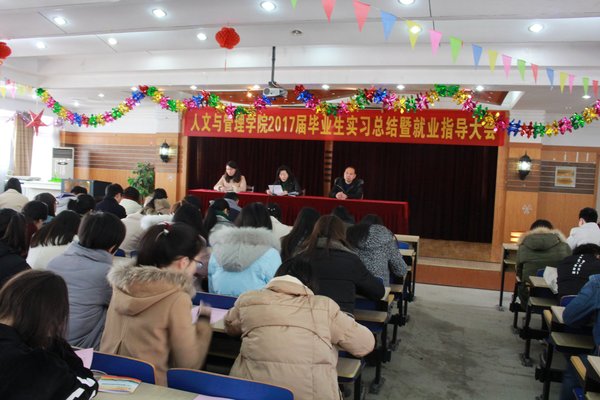 为落实tyc8722太阳集团2017届毕业生实习安全返校工作,帮助员工明确论文答辩流程和安排,引导员工形成正确的就业观和择业观,tyc8722太阳集团于2017年2月24日下午在赭麓校区4号实验楼7楼会议室召开2017届毕业生实习总结暨就业指导大会。人文与管理公司党总支书记窦弘、副经理王国平、秘书吴映辉、各专业辅导员及全体毕业生参加了此次会议。会议由秘书吴映辉主持。