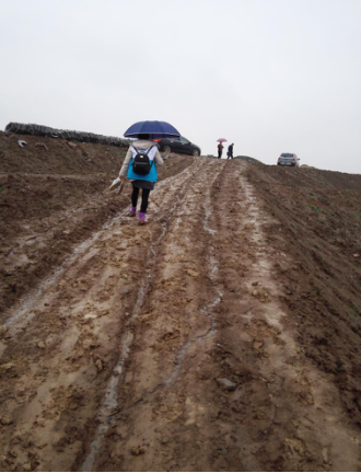 (调查员冒雨前往农户家中)