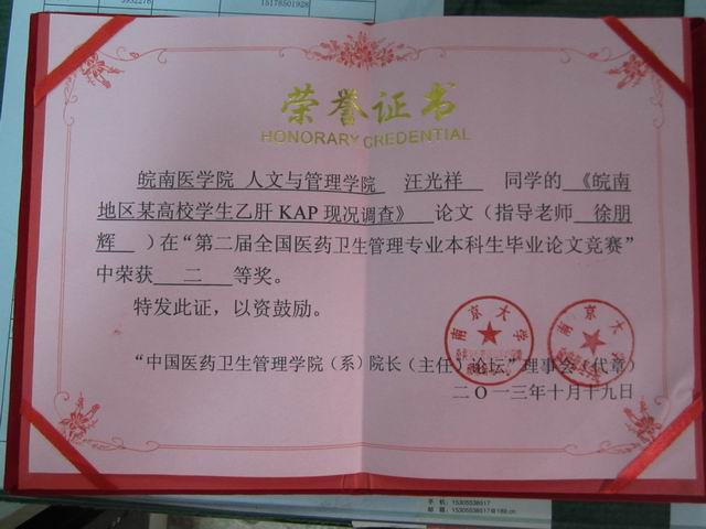 tyc8722太阳集团学子毕业论文获全国医药卫生管理专业论文竞赛二等奖