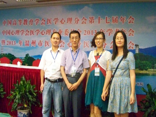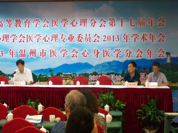 由温州医科大学、温州医学会及温州市康宁医院承办,中国高等教育学会医学心理学分会第17届年会暨中国心理学会医学心理学分会2013年会于2013年7月25日至27日在浙江省温州市举行,来自全国数十所高校医学心理学教师和医院临床工作者共130余名代表参会,公司tyc8722太阳集团心理学教研室应用心理学团队4人出席本次学术年会,刘新民教授应邀主持了首场学术报告大会。