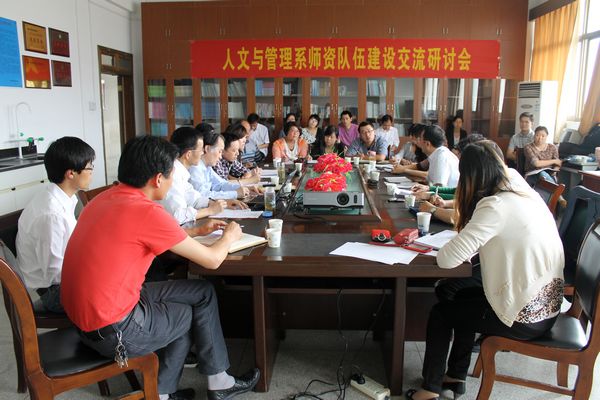| 为响应基层组织建设年的号召,筹划打造高素质的人才团队队伍,5月22日下午,人文与管理系在1号实验楼北六楼心理学教研室会议室召开团队队伍建设交流研讨会,公司党委书记王先俊应邀出席,系党政领导班子、秘书、各教研室主任及骨干教师、各年级辅导员参加了研讨会。会议由系党总支书记阮笑芳主持。