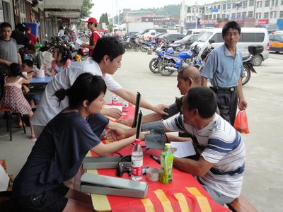 随后社会实践团队分三组开展活动:法学专业小组的员工向当地群众散发《农民工维权法律知识》的宣传单,进行普法宣传,并入户作《社会主义新农村法制建设现状问卷调查》的问卷调查以及开展横幅“创先争优长才干,服务社会促和谐”的签字宣传活动;公管事业管理专业小组的员工义务为当地群众测量血压,分发风油精、仁丹等夏季防暑药品,并散发《自己做自己的管理人》等宣传单,向大家宣传医学管理方面的常识;信管专业小组的员工进入社区居委会,调查了解社区管理信息化方面的进展情况,分发《倡导绿色网络,构建网络文明》的宣传单,并主动进社区,开展“电脑医生”品牌活动,入户帮助社区居民解决一些网络、信息、电脑软件等方面的基本问题。