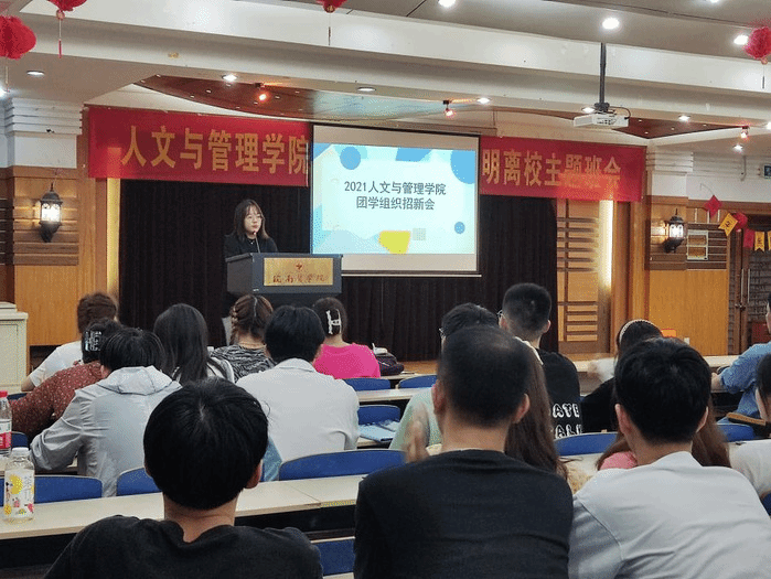 为保证团学组织有新鲜活泼细胞流入,确保高质量、高素质的后备人才参与到学院建设中,同时帮助人管学院新人找到适宜自己发展锻炼的舞台,学院员工会于2021年9月28日下午7点四号教学楼七楼报告厅举行了团学组织招新会。