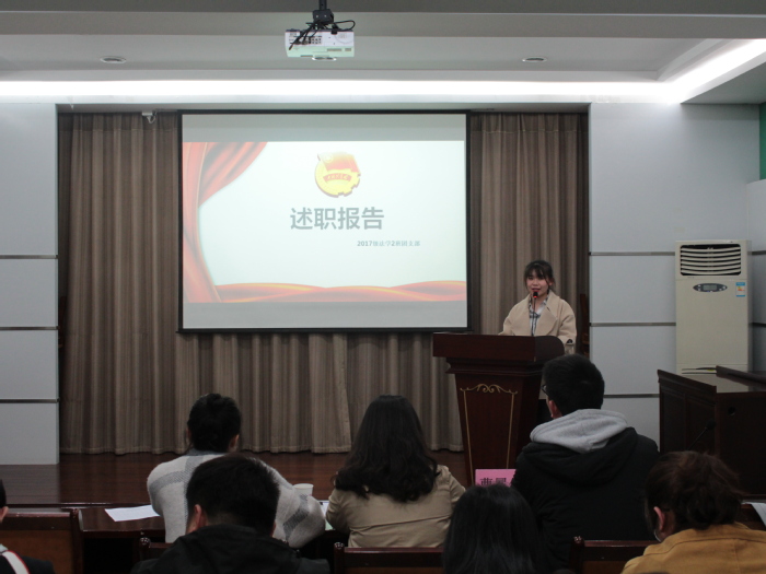 会上,各年级团支书利用PPT汇报的形式,通过支部组成、思想建设、社会实践、成果展示等方面对过去一年的工作进行了总结,并结合事例阐述进行自我剖析,总结得失分享经验,汇报工作的同时也向大家袒露自己担任团支书以来的心路历程。报告会上气氛活跃,到场同学都表示受益良多,整体反映出学院团支部建设的出色成绩。