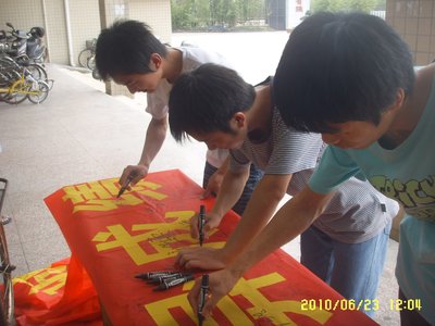 为严肃考风考纪,树立优良学风,6月23日中午,人文与管理系团委、员工会在学校二食堂门口广场开展了“以实力争取优异成绩,以诚信展现良好学风”为主题的诚信考试签名活动。在活动中,广老员工纷纷响应号召,在诚信考试的横幅上郑重签名,表示要认真复习,用优异的成绩展现我系良好的学风。