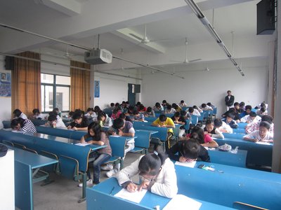 为训练和帮助即将参加英语四级考试的同学们在考试中发挥出更好的水平, 5月23日上午,人文与管理系09级团总支员工会举办了一场英语四级模拟考试。09级共有100余名员工参加了考试。