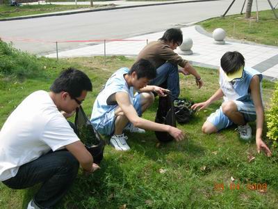 为了使公司校园更加洁净,4月28日上午,人文与管理系的同学们纷纷来到自己的认养绿地,清理草坪。阳光下,同学们不顾头上的烈日高照,埋头苦干。他们二人一组,三人一群,一会儿功夫,枯叶、杂草、垃圾在同学们的努力下,都不见踪影了。 这次活动,同学们不仅为全校师生提供了一个优美校园环境,同时,也加强了同学们对校园环境卫生保护的意识:保护环境,从我做起!